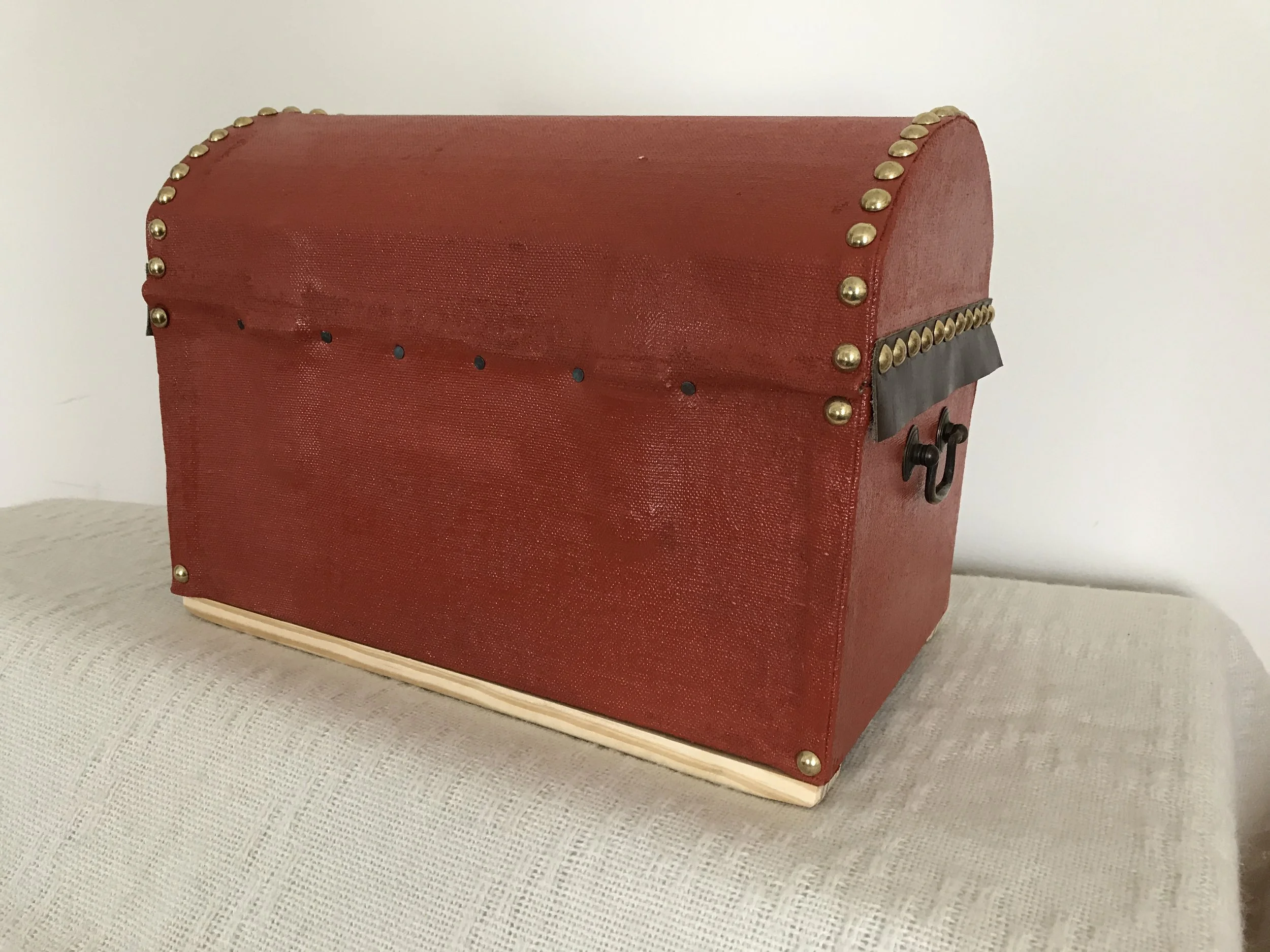 The trunks in these images are attempts at reproducing trunks from the eighteenth century. They are not intended to be exact copies, but to represent what was commonly done. For historical details and materials and methods of construction used in these examples, please refer to the appropriate pages on this website. Some of these may still be available to purchase; if not, they can be reproduced. You may visit me at an event, or contact me with any questions you may have.